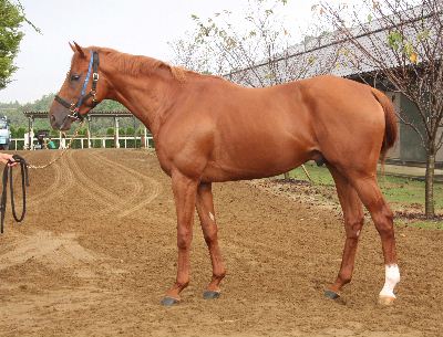 9/11(木)に茨城県・潮来のミッドウェイファームを退厩、9/12(金)に函館競馬場へ入厩の予定です。ウォーキングマシンを40分、角馬場にてハッキングを15分、坂路をキャンターにて2本消化しています。