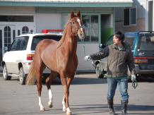 現在、北海道・新冠のコスモヴューファームにて調整中。普通放牧を行っています。