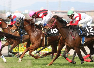 今週の京都日曜9R「祗園特別」芝1400mに出走が確定したウインファンタジア。仮に今週が除外であったならば、来週は中京「賢島特別」芝1200m(ハンデ戦なので斤量が見込まれそうなのがネック)か、東京「葉山特別」芝1600m(当日はオークスがあり、関西馬が大挙して遠征するので、東京の出張馬房の割り当てが少なく、栗東から美浦、美浦から東京という二段階輸送になってしまう可能性が高いのがネック)か迷うところでしたから、池江郎調教師は