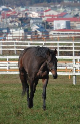 現在、北海道・新冠のコスモヴューファームにて調整中。普通放牧を消化しています。