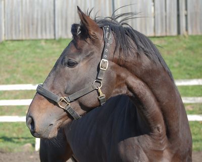 現在、北海道・新冠のコスモヴューファームにて調整中。普通放牧を消化しています。