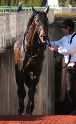 写真は上から、スミヨン騎手騎乗で12着に敗れた3戦目。2番目が初勝利を飾った中京でのレース(秋山騎手)。3番目が中京競馬場の地下馬道からウイナーズサークルに向かうブシドウ。