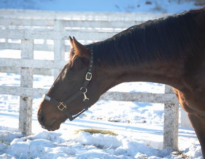 「右前中筋の腫れは見た目にも分かるように残っていますが、歩様は正常ですから痛みはなくなってきたのだと思います。ただ、今後もある程度腫れは残ったまま進めていくことになるでしょうし、乗り出しとなるとまだ時間は掛かりそうな状況です。もうしばらくは普通放牧で様子を見ていきます」と話していました。