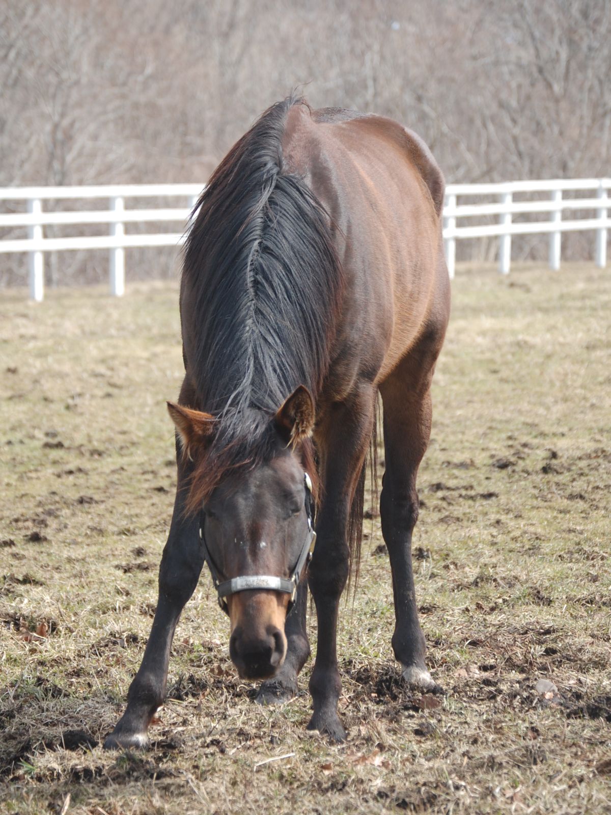 北海道・新冠のコスモヴューファームにて調整中。25日(水)から昼夜放牧を始めており、運動量は普通放牧と比べて格段に増えています。患部に関しては、腫れも一時期よりは引いてきていますし、徐々に固まってきていることから、今後はエコー検査を行い、中身の確認を行います。そのエコー検査で良化が確認できれば、1ヶ月ほど昼夜放牧を消化した後、乗り運動を始めることも検討していきます。