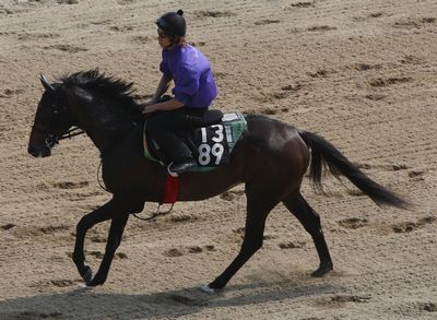 「今日は全体のタイムが遅かった(6F82秒2)ので、最後まで楽でした。仕掛けた程度? いいえ、手綱を緩めてあげただけでビュンと伸びましたよ」と、片山助手も好調持続をアピールしています。