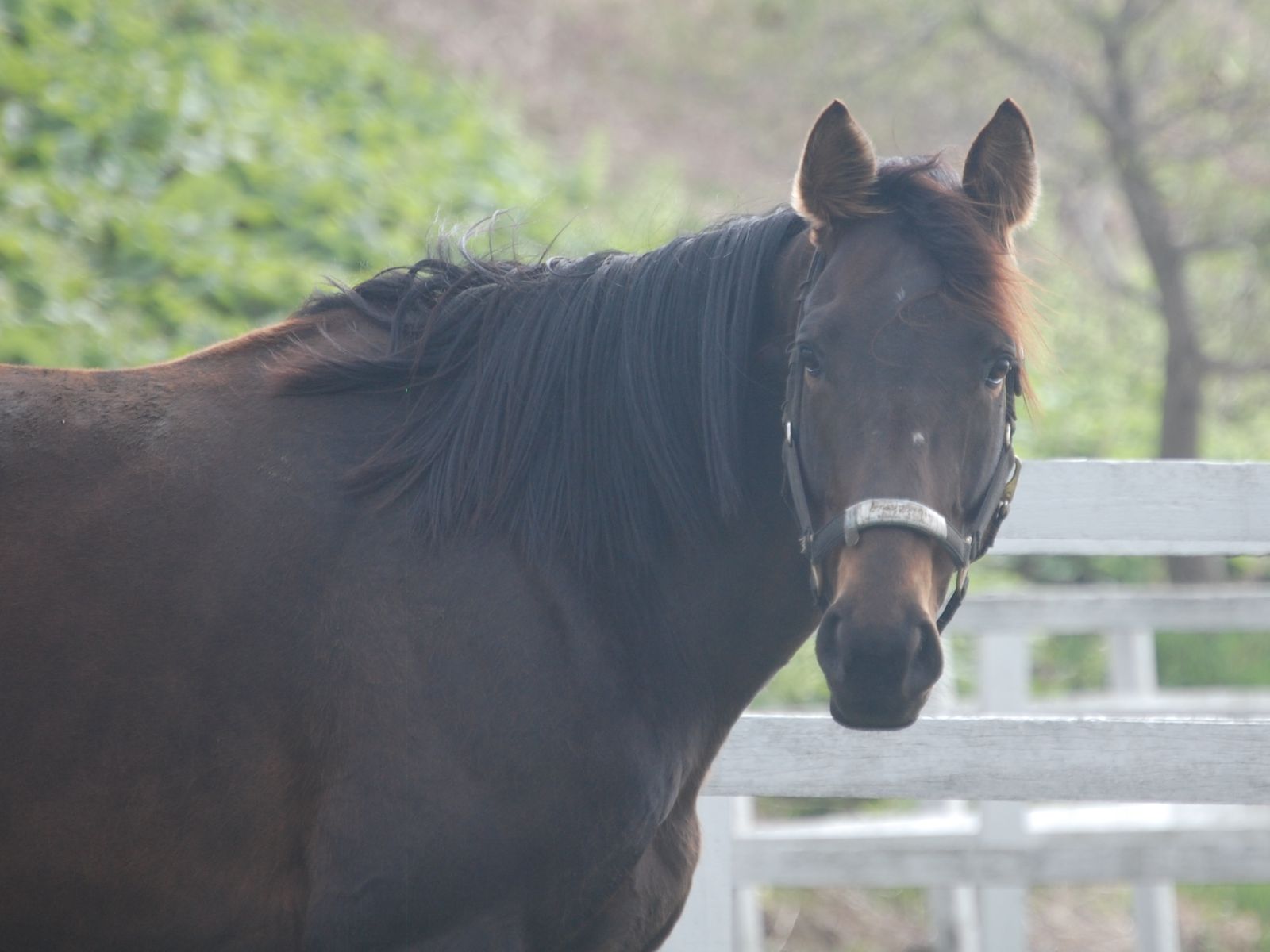 コスモヴューファームにて調整中。昼夜放牧を始めて1週間になりますが、特にグッタリしている様子はなく、淡々とメニューをこなしています。患部に関しては、まだ腫れは目立ちますが、運動量が増えても腫れがぶり返したり、熱を持ったりということはありません。今後はエコー検査で中身の確認を行う予定となっています。