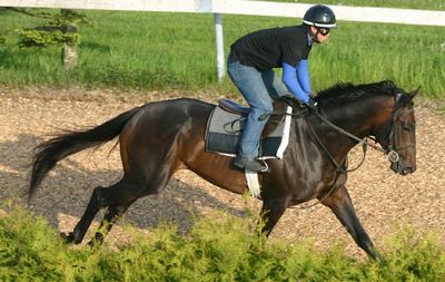 ファンタストクラブにて調整中。ウォーキングマシンを40分、常歩運動後、角馬場にてハッキング1500m、坂路をキャンターにて2本、またはダートコースにてキャンター2000mを消化しています。