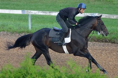 ファンタストクラブにて調整中。ウォーキングマシンを40分、常歩運動後、角馬場にてハッキング1500m、坂路をキャンターにて2本、またはダートコースにてキャンター2000mを消化しています。