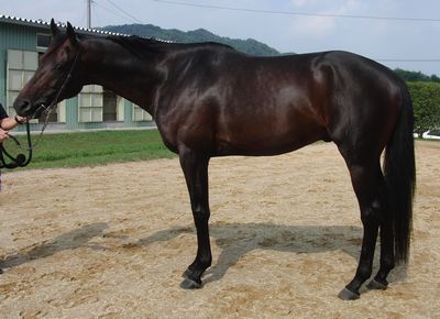 現在、滋賀県・信楽の信楽牧場にて調整中。ウォーキングマシンを50分、常歩運動後、ダートコースにてダク3000m、キャンター3000mを消化しています。