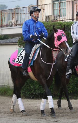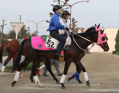 ウインボールドは、持ち乗りの市川調教助手が騎乗して角馬場でジックリ乗り込まれていました。追い切りは明日行なう予定です。