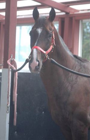 現在、北海道・静内のヤマダステーブルにて調整中。ウォーキングマシン40分、準備運動後、トラックコースにてダクを4000m、坂路をキャンターにて2本消化しています。