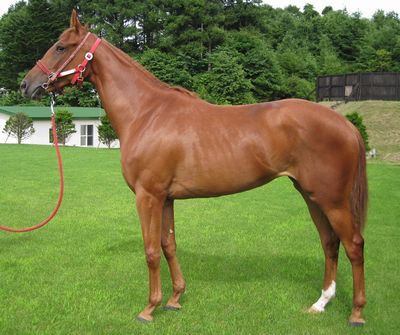 写真を素人目に見る限り、410キロの馬より馬体を大きく見せているように見えます。上腕の筋肉が発達していますね。アバラがうっすら見えますから、レースでは400キロ弱で出走するのかもしれません。