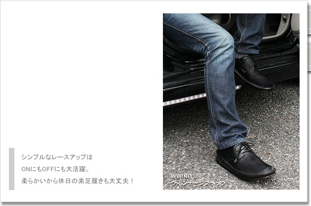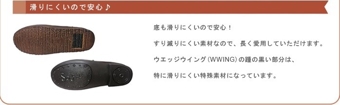 ウエッジウイング(WWING)はカジュアルシューズで、靴底が滑りにくいのが特徴とのことです。